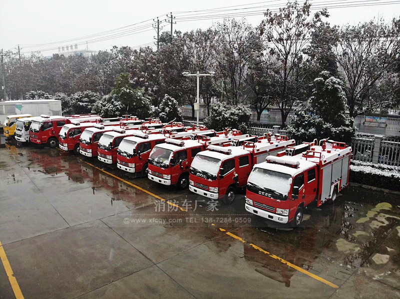 今天;我要發(fā)的是7臺(tái)小型東風(fēng)水罐消防車、載水量2.5噸、配20消防泵、20消防炮、射程也可達(dá)50米;雖說噸位比較小。但是全部都是國(guó)標(biāo)標(biāo)準(zhǔn)的配置、所需要的隨車消防器材也是一樣不少、這批水罐消防車是發(fā)往甘肅張掖的、算上路上跑的時(shí)間、剛好是富余幾天到交貨期;客戶那邊也給予了充分的理解、可以等雪小了之后再出發(fā)、防止路上上凍結(jié)冰不好走。