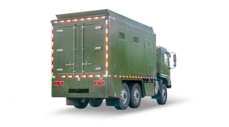 東風(fēng)六驅(qū)越野餐飲車是根據(jù)野外執(zhí)行任務(wù)的需要,為提高后勤保障能力,改善野外生存條件而研制的一種新型自行式炊事車,野外執(zhí)行任務(wù)餐飲的需要。車廂材質(zhì)采用外冷軋鋼板,內(nèi)飾不銹鋼,中間保溫層,隱藏式卡車踏步,頂部安全窗,兩個副食灶,一個蒸飯車,抽油煙平冷柜,水路,電路,油路等。車廂為隔熱保溫大板粘接式輕型結(jié)構(gòu),內(nèi)層全部為新型304食品級不銹鋼材料,干凈明亮衛(wèi)生、易清洗耐腐蝕;多種供電方式為車內(nèi)各用電設(shè)備提供電源。車內(nèi)配有高效的封閉式燃油節(jié)能爐灶、配套設(shè)備、各種廚具、等。本車具有操作方便、使用可靠、熱效率高,保溫效果好等特點,適應(yīng)全天候展收作業(yè),是各組戰(zhàn)斗員的后勤裝備?稍谝恍r內(nèi)供應(yīng)300人的主副食及開水。